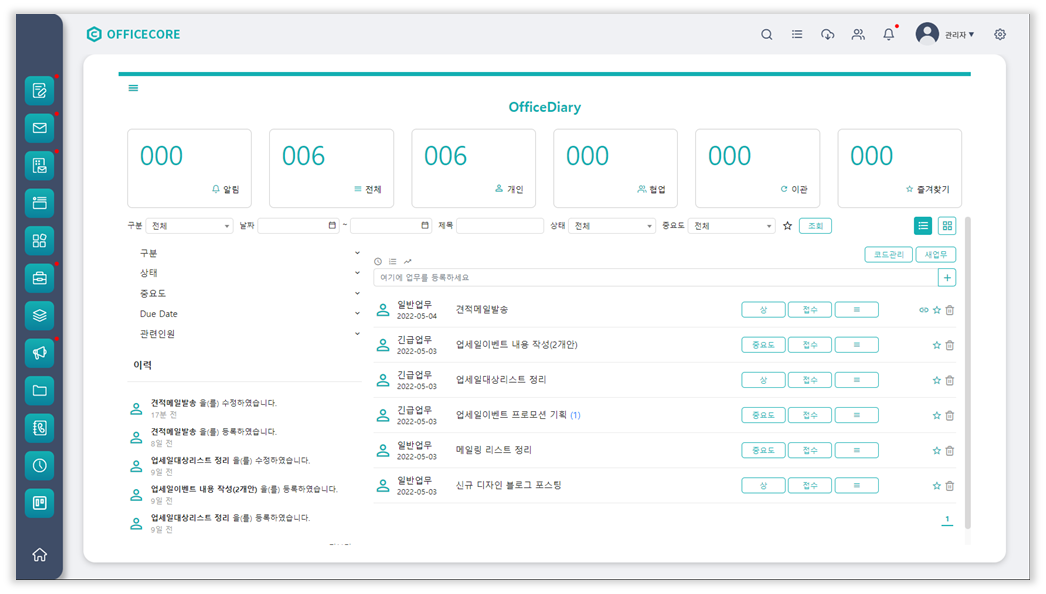 - 한눈에 볼 수 있는 업무현황 목록리스트 제공