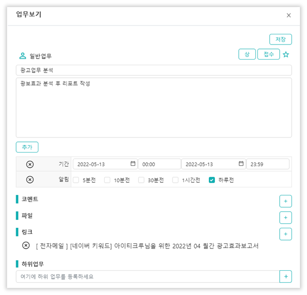 - To Do 업무간 하위업무/연관업무 Link 기능