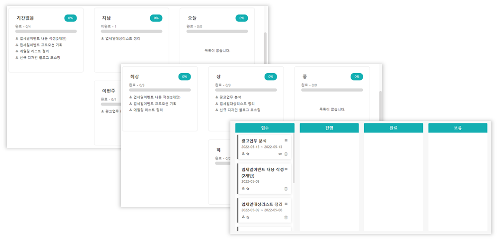 나의 할 일 목록을 간편하게 등록하고, 동료에게 이관하거나 협업을 위해 동료를 초대할 수 있습니다.
