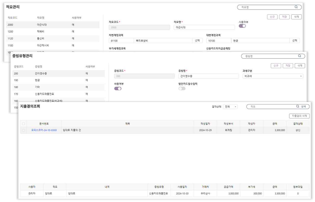• 더존ERP와 지출결의 및 전자결재 연동 기능