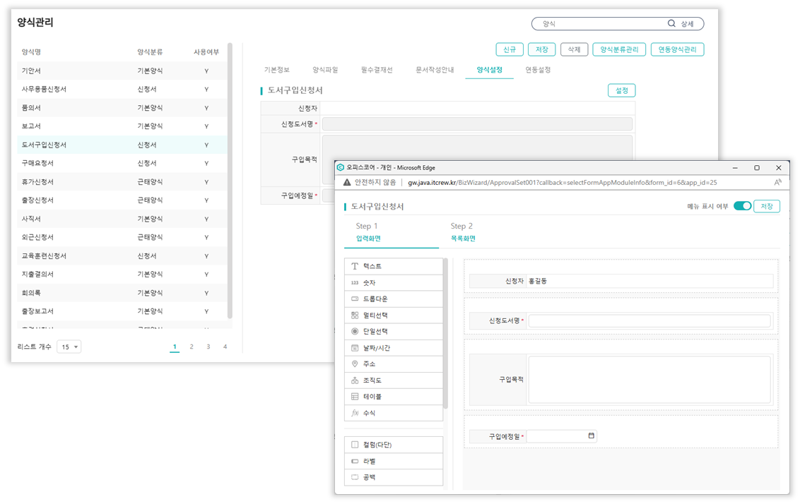 - 양식 작성시 Bizwizard 앱구성 및 양식항목 구성