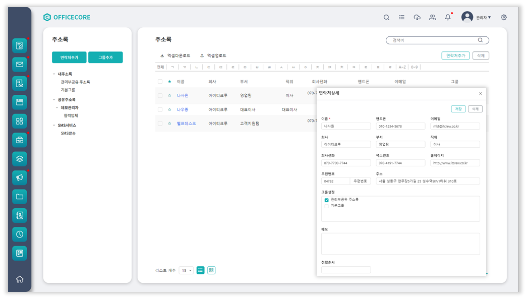 자유로운 주소록 구성, 손쉬운 SMS 발송