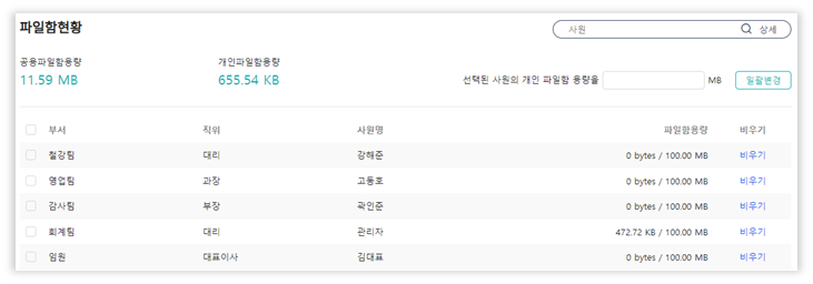 - 관리자에 의한 개인별 파일함 용량 제한 설정
