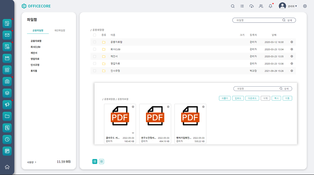 - 공용/개인 파일함 지원