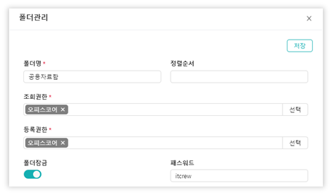 - 폴더별 접근권한 및 비밀번호 보안설정 가능