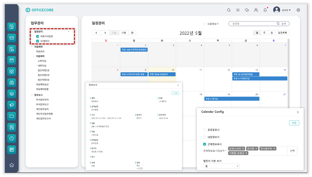 - 다양한 일정분류 (ex,대표이사일정,본부일정등) 구성