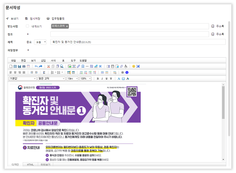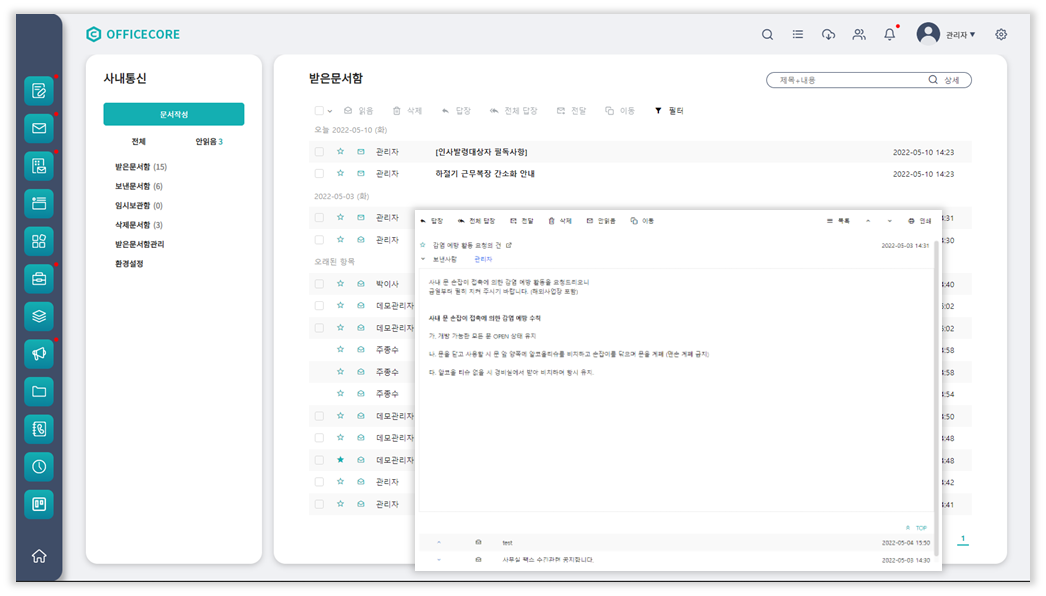 메일 형식으로 사내 구성원 간의 소통을 용이하게 하며, 긴급한 공지사항을 신속하게 전달하는 데에도 사용할 수 있습니다.
