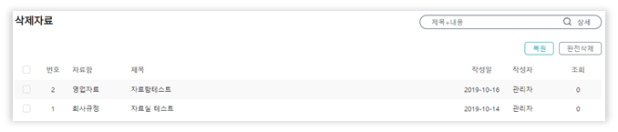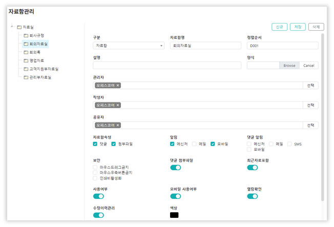 자료실 기능으로 체계적인 사내 자료 관리가 가능합니다.
